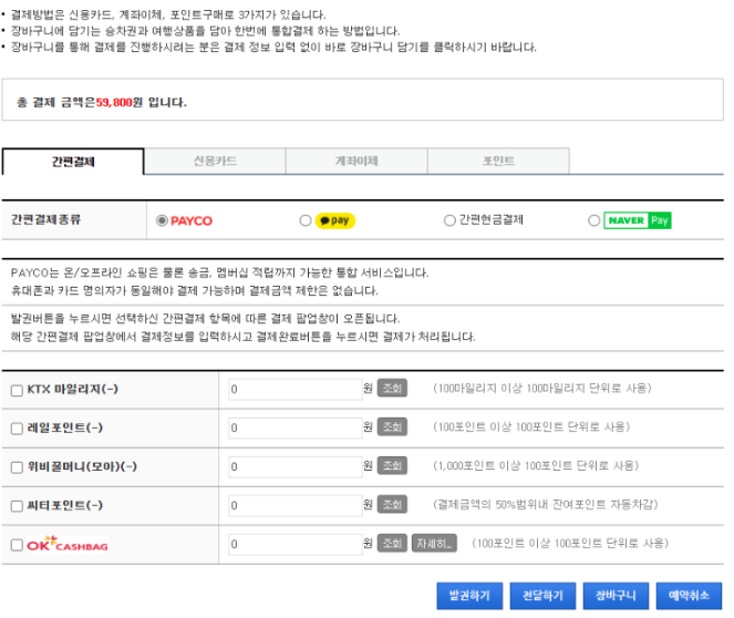 ▶ 결제방법 확인 후 원하시는 방법을 선택해주시고 '발권하기'를 클릭해주시면 됩니다. 결제완료 후 발권한 티켓은 프린터로 인쇄하시면 됩니다.