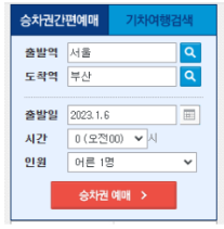 ▶ 출발역 및 도착역을 검색해서 선택하신 후 출발일 및 시간&인원을 입력하신 후 '승차권 예매'을 클릭하고하시면 됩니다.